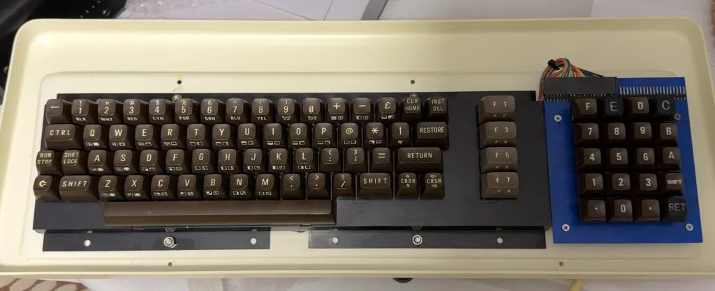 Il tastierino era collegato direttamente al cavo della tastiera del C64 e usciva con un altro connettore al cavo del computer, in poche parole era usato come adattatore passante per collegare il cavo femmina della tastiera al cavo femmina del computer.