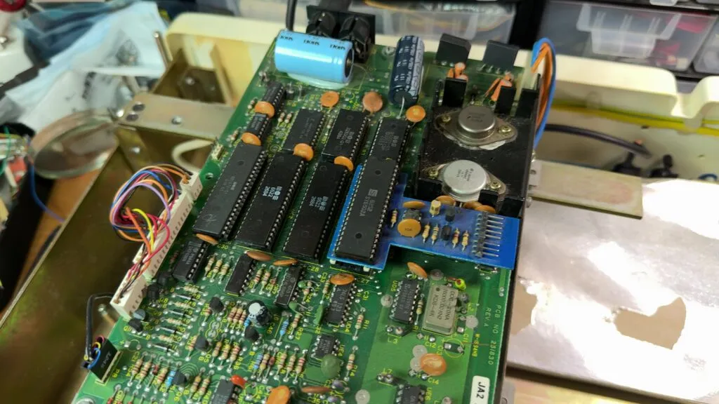 Per resettare i drive è stata inserita una scheda tra la CPU (MOS 6502) e lo zoccolo del drive per poter dare un impulso di reset al floppy.